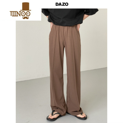 YANXUDAZO 垂感皱休闲长裤男夏季薄款透气凉爽弹性裤子宽松直筒潮流