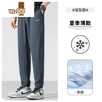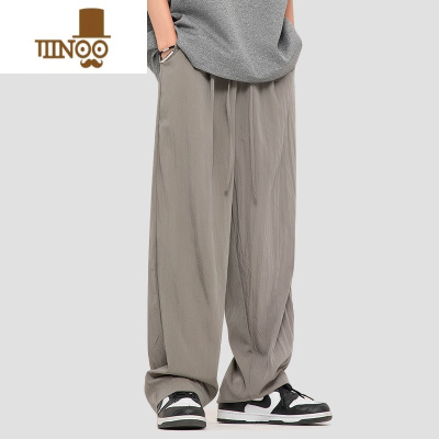 YANXU夏季薄款高弹冰丝休闲裤男宽松纯色皱直筒透气运动速干排汗裤子