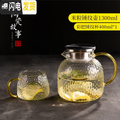 三维工匠冷水壶玻璃水壶家用可高温玻璃开水杯防爆扎壶套装大容量凉水壶 米粒锤纹壶1300+冰晶杯400*1