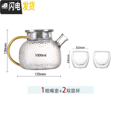 三维工匠冷水壶加厚玻璃泡茶壶可高温凉白开水杯子防爆大容量水壶家用套装 粗嘴壶+2双层杯凉水壶