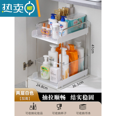 敬平卫生间置物架洗漱台下水槽收纳器浴室厕所洗手洗脸台储物柜塑料 加高款两层置物架[白色]浴室置物架