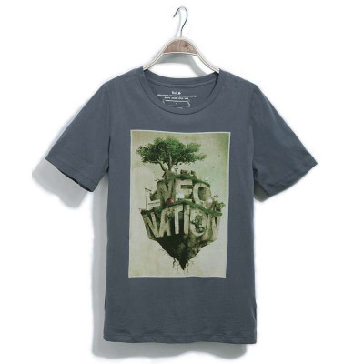 VaLS 男装经典漂浮岛个性印花圆领短袖T恤010300030(灰色/L)