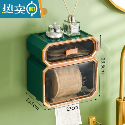 敬平卫生间纸巾盒厕所厕纸置物架洗手间卫生纸抽纸卷纸免打孔防水壁挂 轻奢绿[升级款]高颜值/免打孔 抽纸卷纸两用