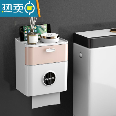 敬平香彩卫生间纸巾盒壁挂式防水厕纸盒免打孔抽纸盒卫生纸卷纸置物架 清新粉