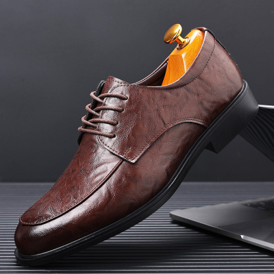 皮鞋男2025新款手抓纹商务休闲男士英伦韩版工作新郎结婚皮鞋