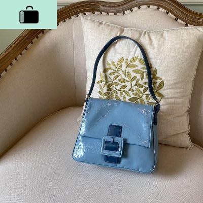 小众设计个性复古小方包女savi同款漆皮亮面腋下包单肩手提法棍包NEW LAKE 浅蓝色(收藏送斜跨带)女士单肩包
