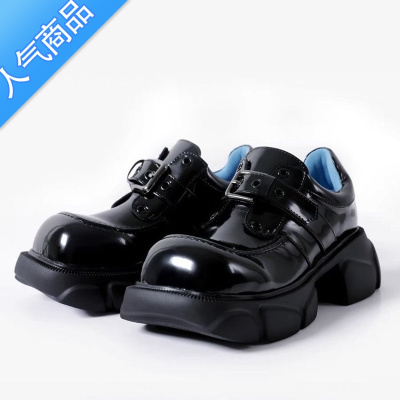 SUNTEK黑色原创复古小皮鞋女2023春秋小众设计感厚底单鞋大头乐福鞋