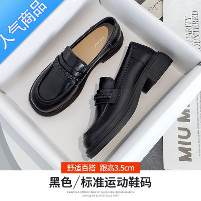 SUNTEK乐福鞋女2023新款夏季厚底黑色英伦单鞋百搭软底jk小皮鞋