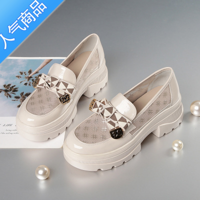 SUNTEK乐福鞋女2023新款夏季网纱厚底单鞋透气网面英伦风小皮鞋