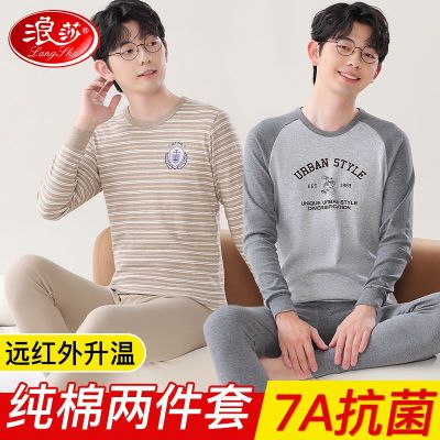 浪莎男士保暖内衣超薄款纯棉秋衣卫生裤套装高弹莱卡棉男生卫生衣卫生裤