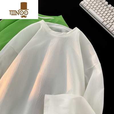 YANXU冰丝亚麻长袖t恤男薄款夏季纯色打底衫潮大码圆领棉麻卫衣早秋衣