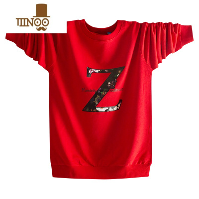 YANXU中国风长袖T恤薄款卫衣男 加大码青少年高中学生秋衣红