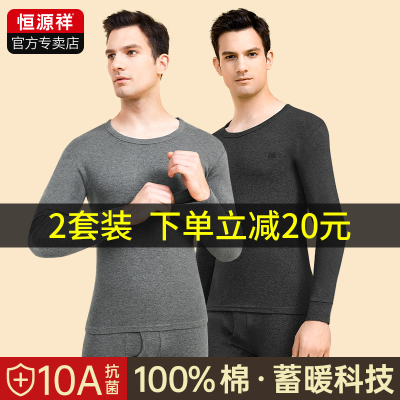 恒源祥纯棉发热衣秋衣卫生裤男士套装全棉毛衫卫生衣卫生裤新款秋冬季