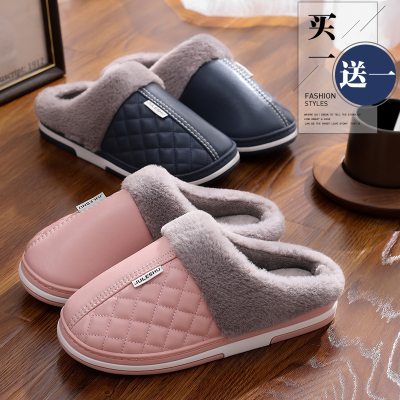 棉拖鞋女秋冬季室内家居保暖家用防滑情侣防水PU皮拖鞋男冬LDN957