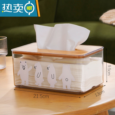 敬平ins同款可爱电视机纸巾盒免打孔抽纸盒手机支架收纳盒桌面摆件 透明白熊纸巾盒