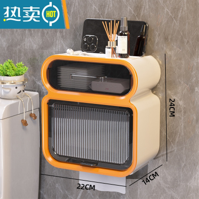 敬平创意免打孔防水纸巾架厕纸盒卫生间纸巾盒厕所卫生纸置物架抽纸盒 纸巾盒双层顶部置物架纸巾盒-橙白浴室置物架