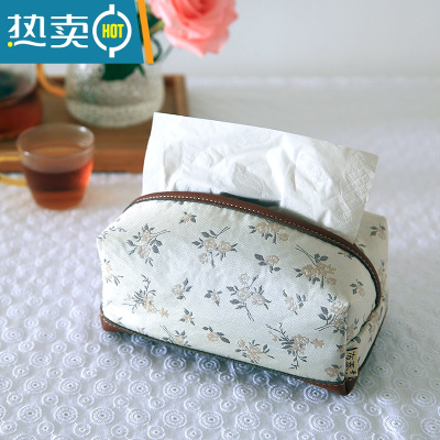 敬平手工刺绣车载纸巾盒客厅家用抽纸盒布艺日式纸巾袋餐巾纸盒 粉红小碎花 纸巾盒