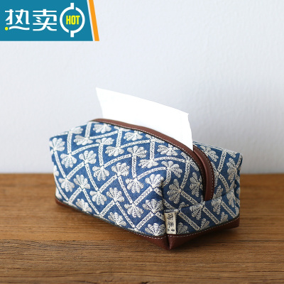 敬平手工刺绣车载纸巾盒客厅家用抽纸盒布艺日式纸巾袋餐巾纸盒 国风提花-浅蓝 纸巾盒