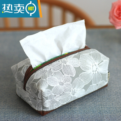 敬平手工刺绣车载纸巾盒客厅家用抽纸盒布艺日式纸巾袋餐巾纸盒 国风提花-乳白 纸巾盒