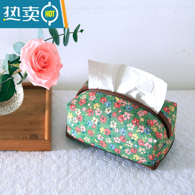 敬平手工刺绣车载纸巾盒客厅家用抽纸盒布艺日式纸巾袋餐巾纸盒 绿色小碎花 纸巾盒