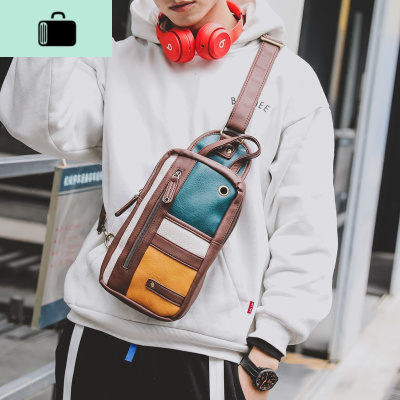 新时尚休闲男士胸包女情侣日韩版竖款潮男包包单肩斜挎包背包日系NEW LAKE 咖啡色男士斜挎包
