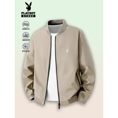 花花公子棒球领夹克男士上衣服春秋季新款商务休闲春装外套男