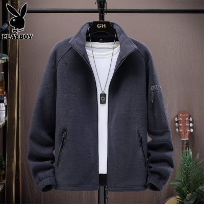 花花公子摇粒绒外套男士春秋季2025新款潮流休闲时尚立领夹克男装