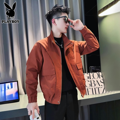 花花公子假两件外套男士潮流杏色宽松衣服春季新款青少年痞帅夹克