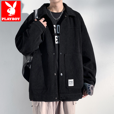 花花公子翻领外套男士春秋季工装潮牌夹克日系复古痞帅休闲上衣服