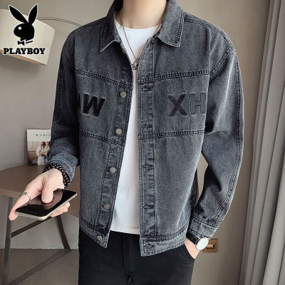 花花公子休闲牛仔外套男士春秋季潮牌上衣服2025年新款翻领夹克男