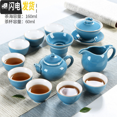 三维工匠陶瓷功夫茶具套装小套家用简约泡茶壶盖碗喝茶杯茶洗茶道配件 09知蓝描边茶具13头