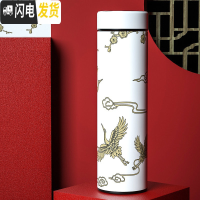 三维工匠真空保温杯男304不锈钢水杯便携大容量茶杯学生女泡茶杯ins创意 梅花仙鹤500(白色)