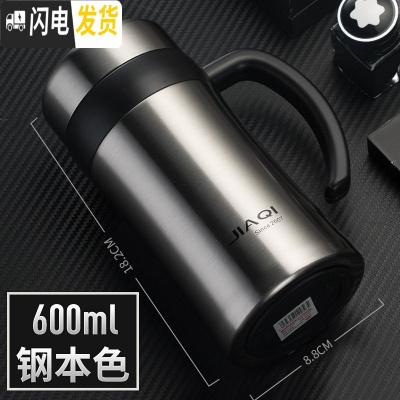 三维工匠保温杯大容量带把过滤网泡茶杯子男女办公茶杯不锈钢真空水杯 刚本色-600