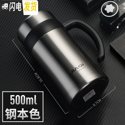 三维工匠保温杯大容量带把过滤网泡茶杯子男女办公茶杯不锈钢真空水杯 刚本色-500