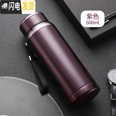 三维工匠保温水杯男士大容量304不锈钢茶杯便携防摔水壶学生泡茶杯子 紫色/600保温杯