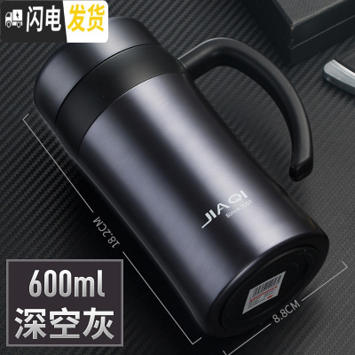 三维工匠保温杯大容量带把过滤网泡茶杯子男女办公茶杯不锈钢真空水杯 深空灰-600