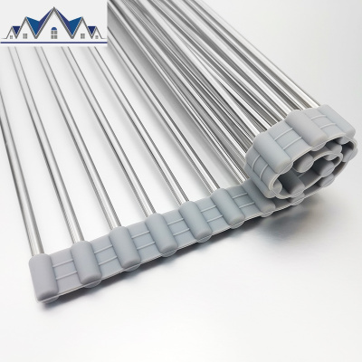 304不锈钢 厨房置物架水沥水架碗碟硅胶收纳水池卷帘折叠沥水架 三维工匠