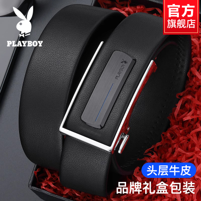 花花公子新款男士皮带真皮自动扣腰带青年商务百搭休闲牛皮裤腰带