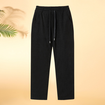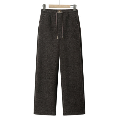 新款妈妈冬装松紧腰保暖直筒裤子中老年女装加绒加厚毛呢长裤