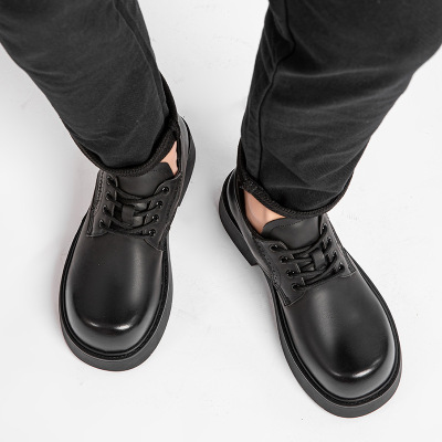 复古德比鞋春季新款透气低帮工装鞋子男圆头美式大头休闲正装皮鞋