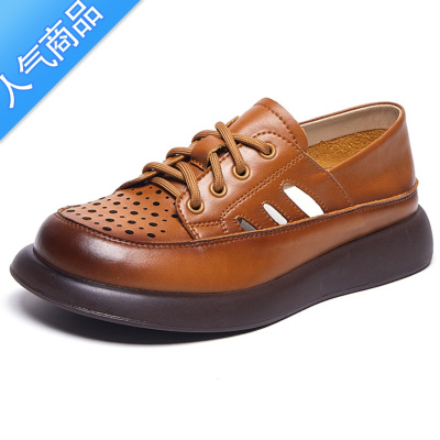SUNTEK2023夏季新款厚底鞋子女凉鞋洞洞妈妈鞋软底宽脚大头复古皮鞋