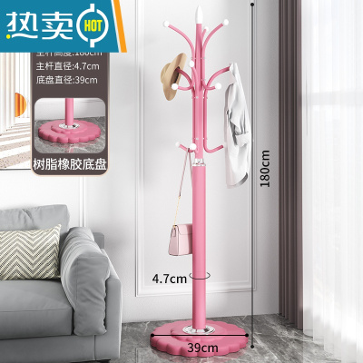 敬平大理石衣帽架落地卧室挂衣架房间立式衣服架子简约现代家用晾衣架 仙女粉[橡胶底盘]加大39cm