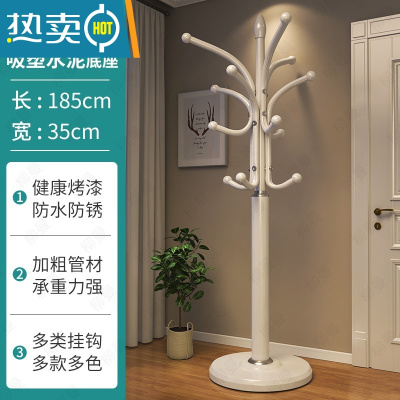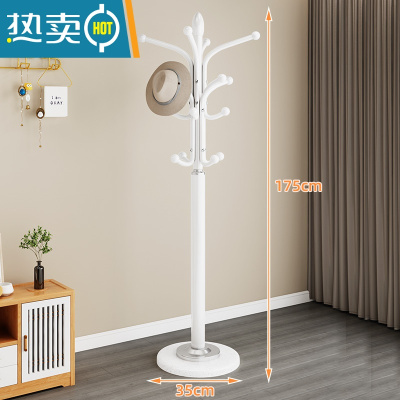 敬平衣帽架落地家用卧室挂包晾衣服架子大理石立式客厅金属房间置物架 水泥覆膜35cm大底盘-白色晾晒架