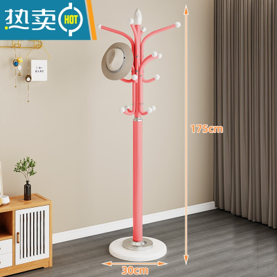 敬平衣帽架落地家用卧室挂包晾衣服架子大理石立式客厅金属房间置物架 水泥覆膜35cm大底盘-粉色晾晒架
