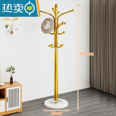 敬平大理石衣帽架落地卧室挂衣架房间立式衣服架子简约现代家用晾衣架 金色(30厘米理石底盘)