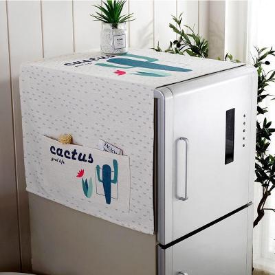 家柏饰(CORATED)北欧风格滚筒洗衣机罩盖布单开双开冰箱盖巾防尘罩棉麻布艺 仙人掌 中号冰箱盖巾(60*150cm)