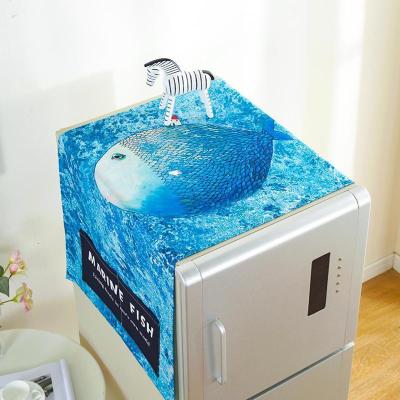 家柏饰(CORATED)北欧风格滚筒洗衣机罩盖布单开双开冰箱盖巾防尘罩棉麻布艺 海鱼 双开门冰箱盖巾(70*170cm)