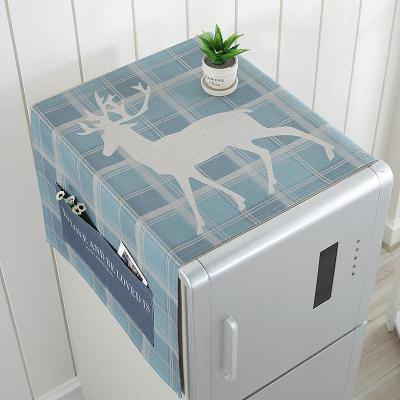 家柏饰(CORATED)北欧风格滚筒洗衣机罩盖布单开双开冰箱盖巾防尘罩棉麻布艺 蓝格鹿 小冰箱盖巾(50*130cm)