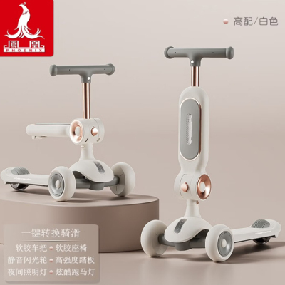 凤凰 滑板车儿童1-3-6岁以上小孩踏板折叠男孩女宝宝滑板车688 二合一 白色[688-折叠版]音乐灯光