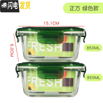三维工匠玻璃保鲜盒家用耐热玻璃保鲜碗微波炉用便当盒带盖玻璃碗女方形碗 正方绿850送850